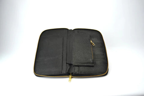 Billetera hecha a mano. Cuero basto y cierre YKK. Medidas: 23cm de alto x 14cm de ancho.