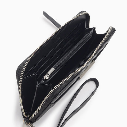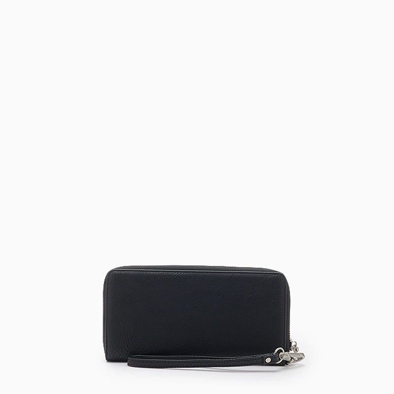 Billetera de Hush Puppies Glair, confeccionada en cuero sintético. Acceso principal con cierre metálico níquel y tira cierre personalizado con tiento en pu. Posee correa de mano con mosquetón personalizado permitiendo ser desmontable. En el frente posee bolsillo con ornamento personalizado. Contiene bolsillo interno con cierre. Lleva múltiples folios en laterales para tarjetas y separaciones para billetes. Forreria en microfibra. Medidas: 10cm de alto/ 20cm de ancho/2cm de profundidad.