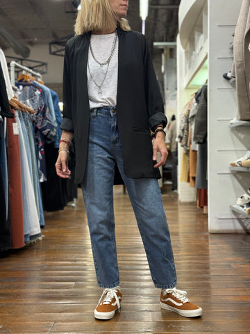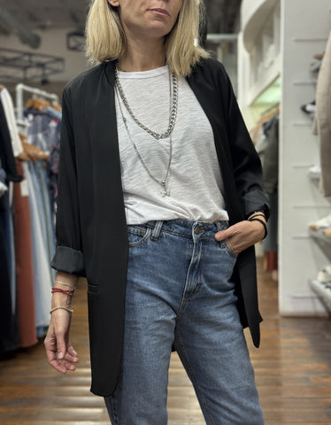 MUY IMPORTANTE. La prenda no tiene botones para cerrarlo y está pensada para usar abierta dejando espacio en el centro entre lado y lado tal como puede verse en las imágenes. El contorno de siza está tomado con el blazer cerrado por eso Tenes que contemplar los cm de apertura.