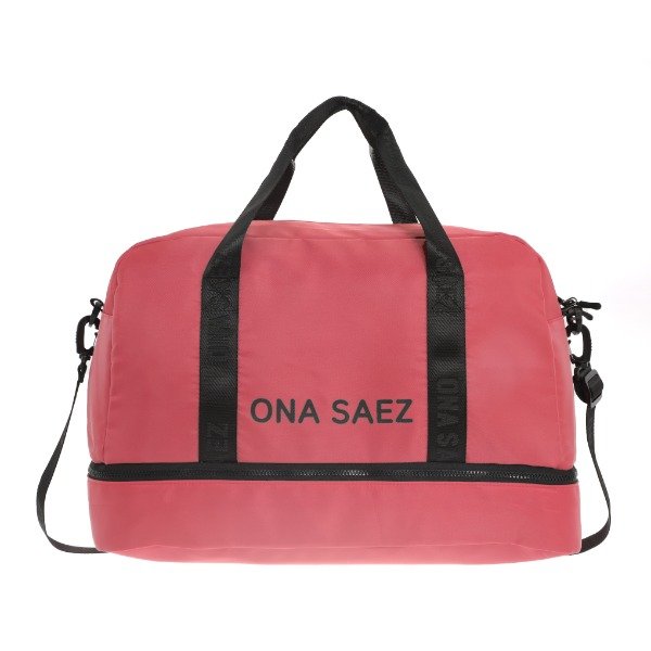 Bolso deportivo confeccionado en nylon 100% color negro con detalles en color incluye múltiples bolsillos exteriores, uno con cierre frontal visible, y bolsillos laterales amplios para mayor capacidad de almacenamiento.