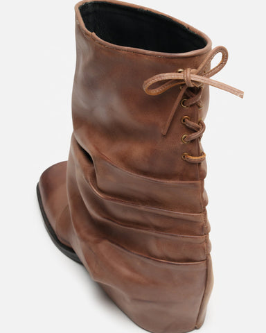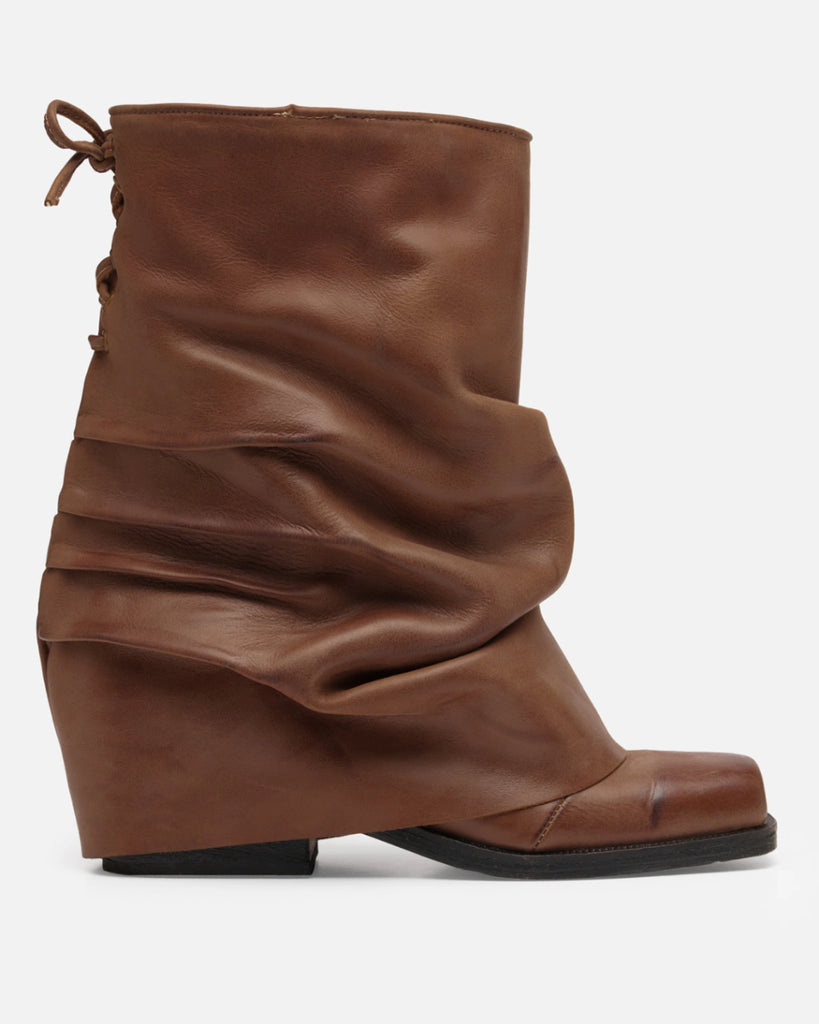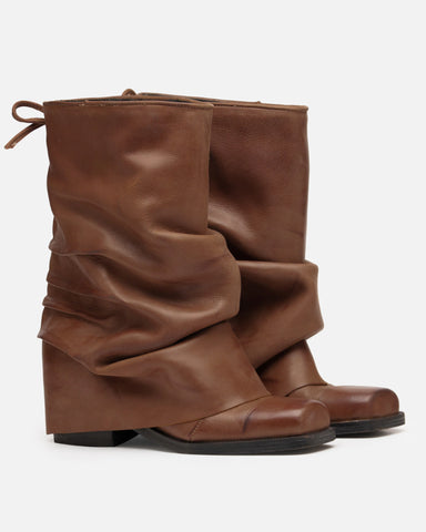 Bota con caña media-baja de 25 cm y taco de 5 cm. Confeccionada en cuero
