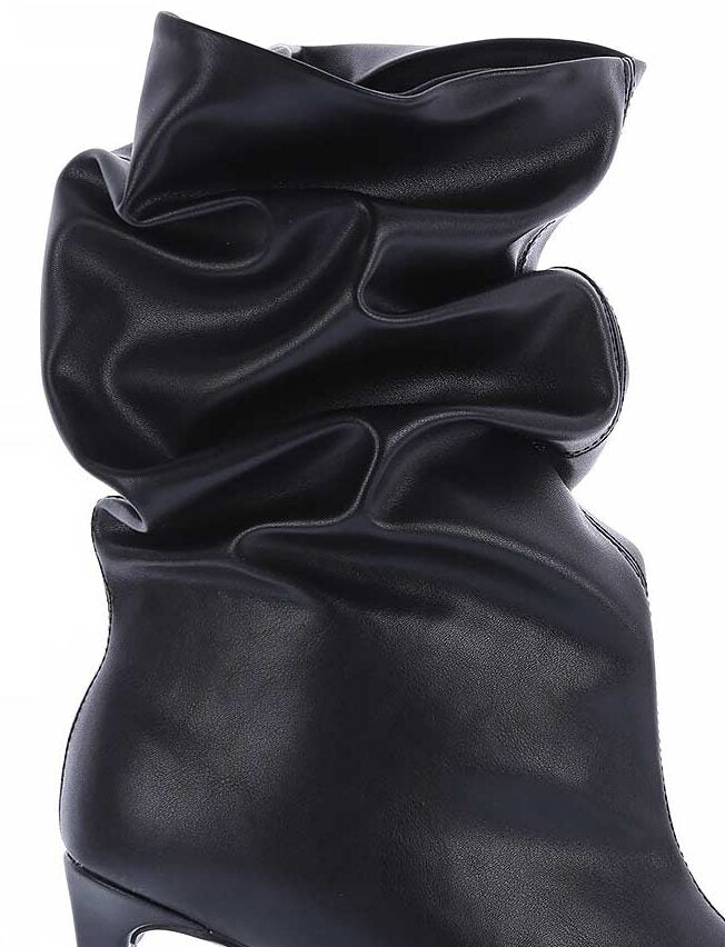 Diseño con caña arrugada, punta fina y taco aguja alto, que estiliza la figura y aporta un aire sofisticado.