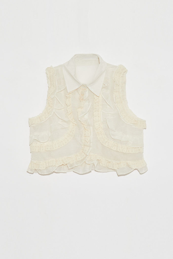 Blusa De Organza, Fit Al Cuerpo. Este ítem Cuenta Con Volados Y Puntilla A Tono Tanto En Delantero Como Espalda, Cuello Camisero Y Acceso Por Medio De Botones En Cartera Central. Ideal Para Utilizar Tanto Durante El Día Como Por La Noche.