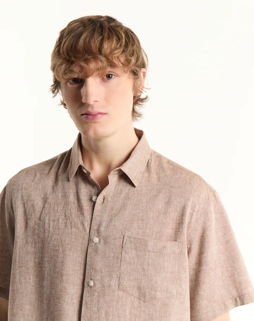 Camisa de Lino liso con 1 bolsillo y cuello ingles. Moldería Classic fitComposición: 50% lino 50% rayonCuidados de la prenda: lavar con agua fria, no usar blanqueadores, usar jabon neutro, secar por goteo, no retorcer, plancha suave