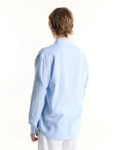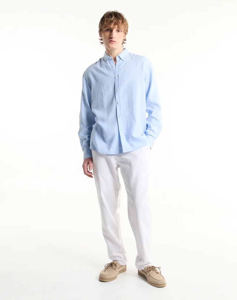 Camisa de Lino a rayas y cuello ingles con botones. Moldería Classic fitComposición: 50% lino 50% rayon.Cuidados de la prenda: lavar con agua fría, no usar blanqueadores, usar jabón neutro, secar por goteo, no retorcer, plancha suave