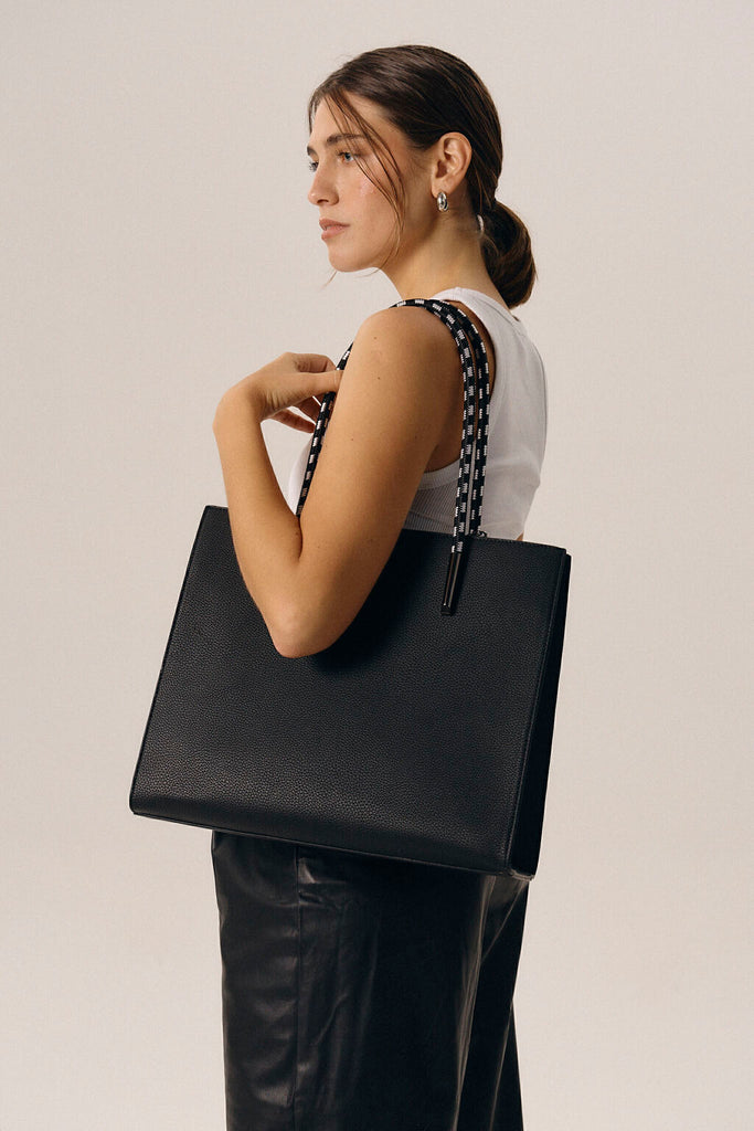 Nuestro clásico ofrece el tamaño ideal para lo esencial del día a día. Con tres compartimentos y un cierre en el medio. Con soga como manijas y una correa extraíble, para transformarlo en un bolso casual perfecto para una salida formal.
