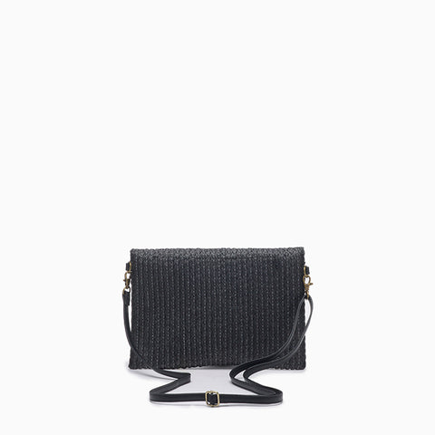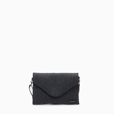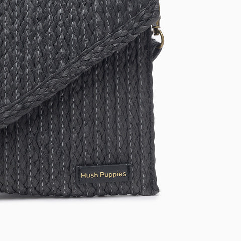 La Bandolera Hush Puppies Nori color negro está confeccionada con fibras naturales combinadas con cuero ecológico en la correa y la badana marcaria. Su correa desmontable permite usarla también como sobre, adaptándose a diferentes ocasiones. Presenta apertura principal con botón imán y cierre, además de un bolsillo interno ideal para guardar pequeñas pertenencias. El interior cuenta con forrería en tela sintética que aporta durabilidad. Medidas: alto 21 cm / ancho 30 cm.