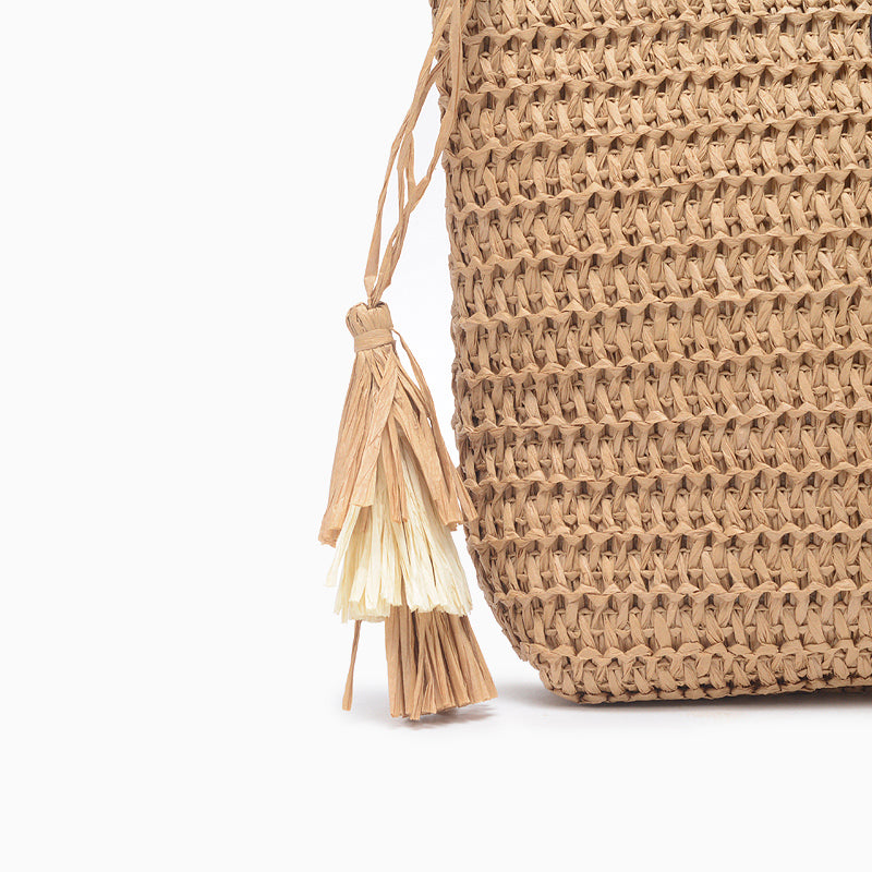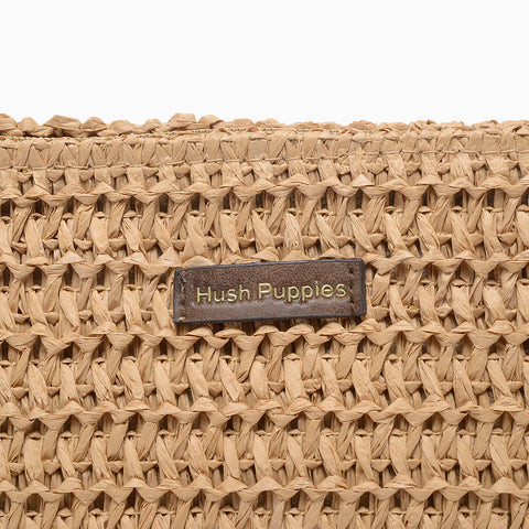 La Cartera Hush Puppies Lerici color beige está tejido en fibras naturales y cuenta con una badana marcaria en cuero ecológico al frente que realza su diseño artesanal. Incluye un charm elaborado en las mismas fibras que aporta un detalle distintivo. Su apertura principal es con cierre y posee un bolsillo interno ideal para pequeñas pertenencias. El interior está forrado en tela sintética. Medidas: alto 23 cm / ancho 31 cm / profundidad 6 cm.