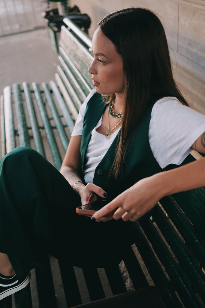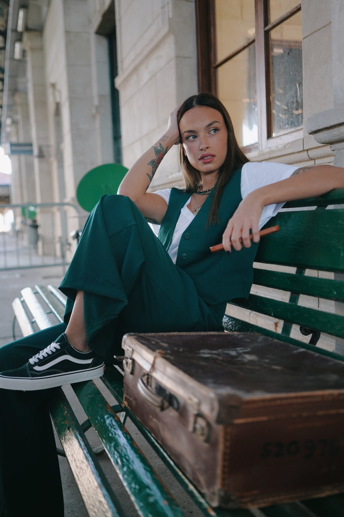 Nuestro chaleco Abbey forma parte del Set England (pantalón London twill y blazer Covent ) confeccionado en género twill, una tela que se caracteriza por tener algo de cuerpo, la vas a poder usar en invierno, pero no pierde la caída y movimiento.