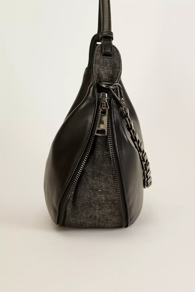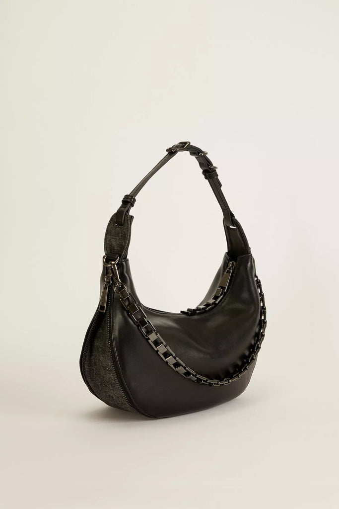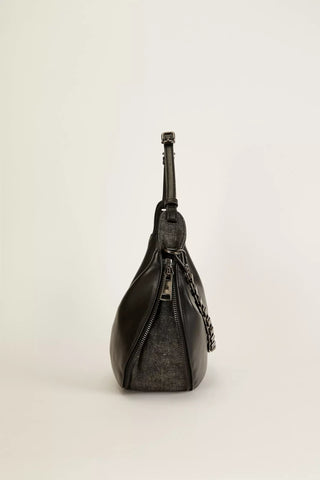 Confeccionada en cuero ecológico de calidad premium, la cartera On Time sorprende con un cierre innovador que ajusta su capacidad y tamaño según tu necesidad. Su fuelle de denim y las cadenas metálicas le dan un toque canchero y moderno, perfecta para acompañarte con onda en cualquier ocasión.