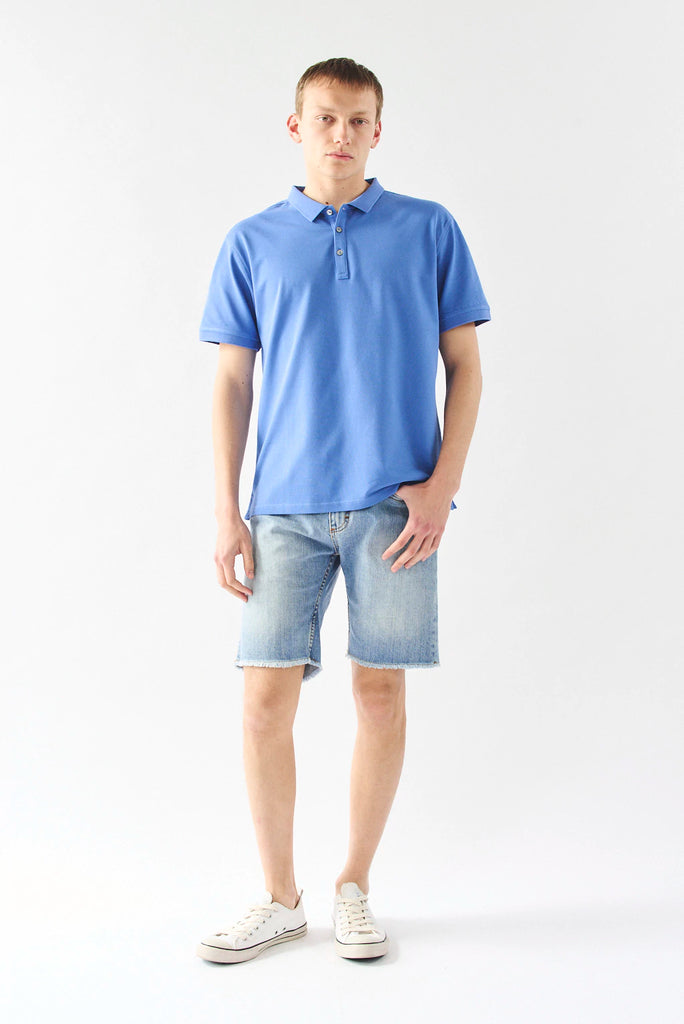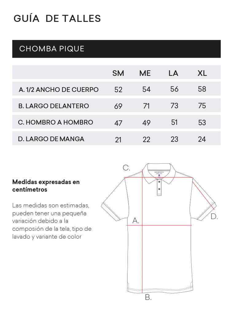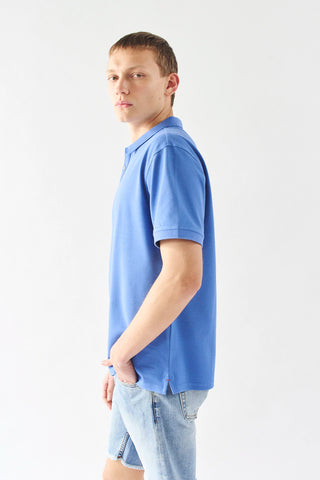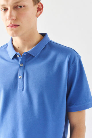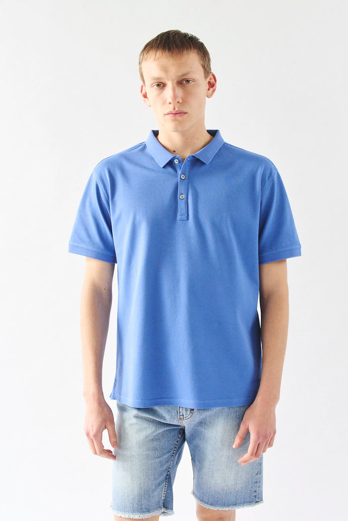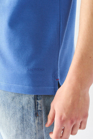 Chomba manga corta con tajos laterales, cuello y puños tejidos. Calce regular. Tejido liquid cotton pique.