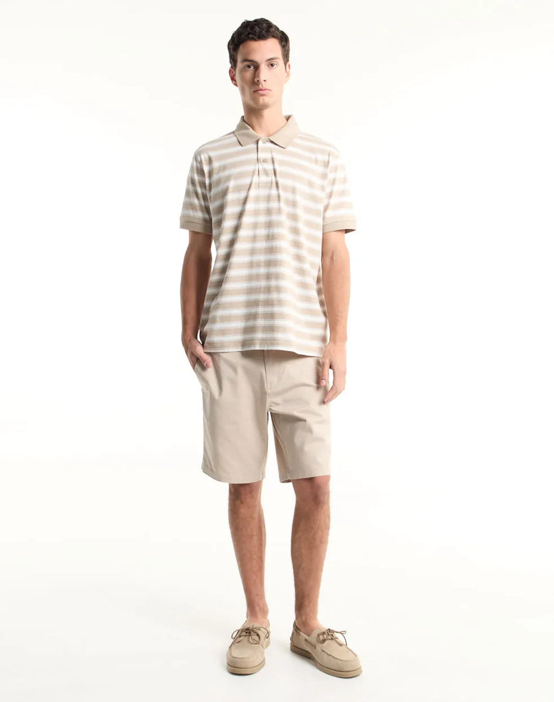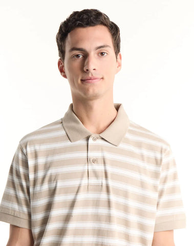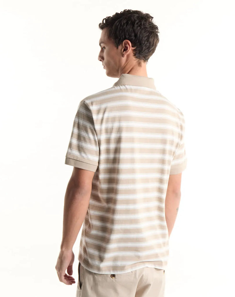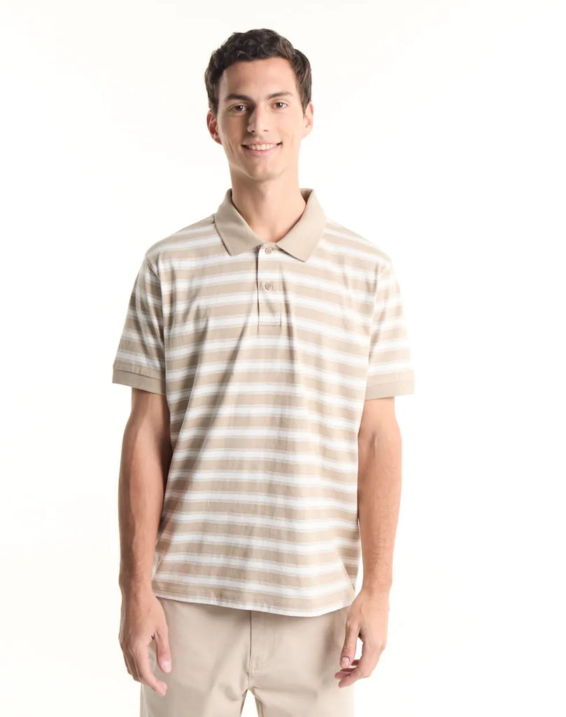Chomba de jersey con rayas tejidas en dos tonos, con mangas cortas, de calce intermedio con cuello polo