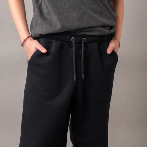 ART. 21NRUB2611 Tejido: Frisa invisible Composición: Algodón 85% Poliéster 15% Calce: Loose fit Detalles: Bolsillos delanteros. Botamanga con elástico embutido. Etiqueta tejida en delantero. Cintura elastizada con cordón de ajuste.