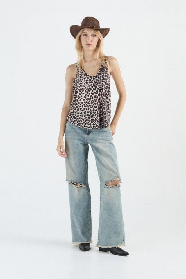 ART. 62757 Musculosa de jersey print escote en U profundo con detalle de tachas en delatero Composición: 100% poliester Cuidados: Lavar a mano del revés con agua fria, no planchar.