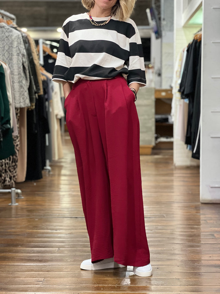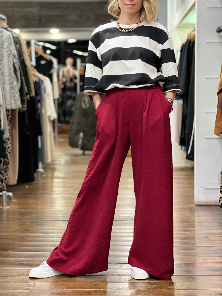 Pantalón de cey corte wide leg (piernas anchas).  Cintura tiro alto (los talles L XL XXL y XXL vienen con cintura elastizada en la parte posterior)