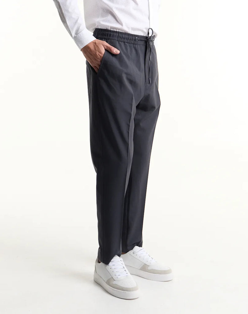 Jogger vestir liso, moldería regular, con cintura elástica y cordón con punteras. Para un calce más holgado sugerimos comprar un talle más.