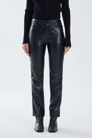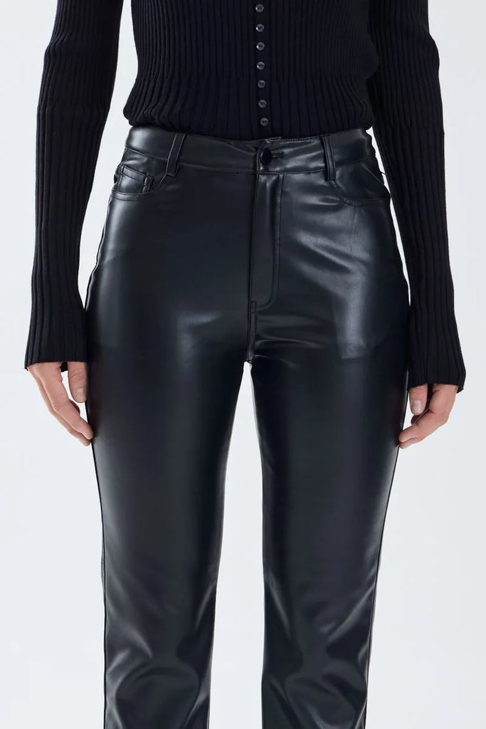 Pantalón con corte 5 bolsillos, estilo pantalon de jean. Pierna recta. Tiro medio. Genero simil cuero. Este articulo es tu aliado basico para todos los dias!