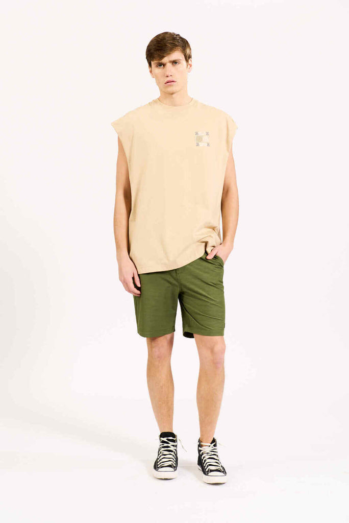 Liviana, suave y lista para el calor. La muscle Eclipse de algodón liviano con estampa en frente y espalda. Su calce cómodo y tejido natural la hacen perfecta para los días cálidos. Pertenece a la línea "Dazed" donde la fusión del diseño de mediados de siglo con una estética de surf vintage que ofrece una nueva visión de la nostalgia, combinando elementos tradicionales con sensibilidades modernas. Incorporando motivos inspirados en viajes y un diseño minimalista, mientras mantiene una vibra playera.