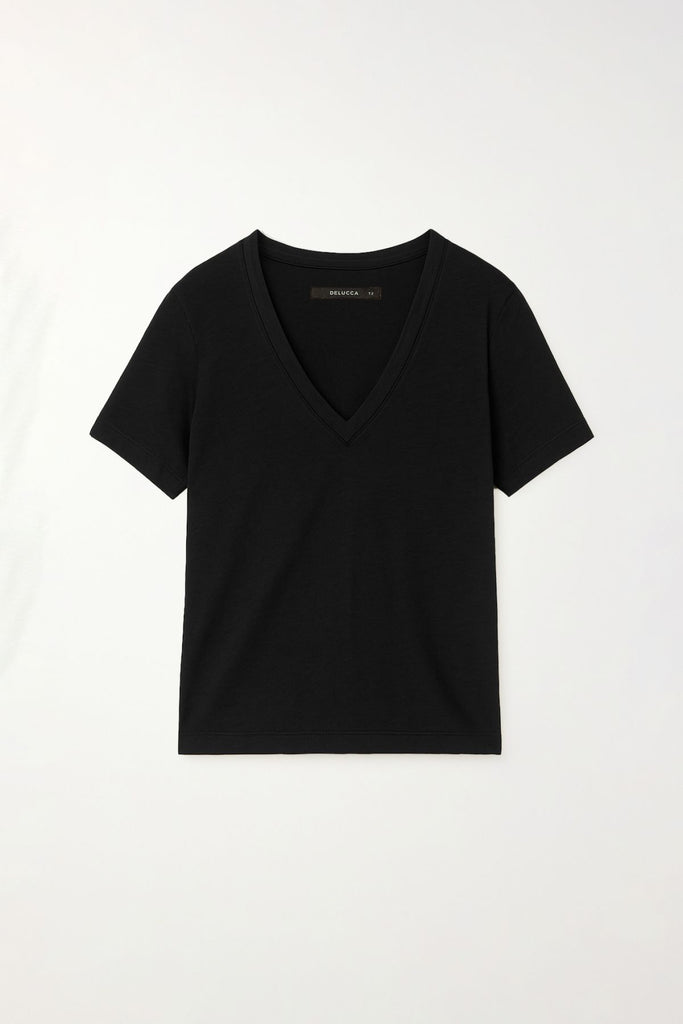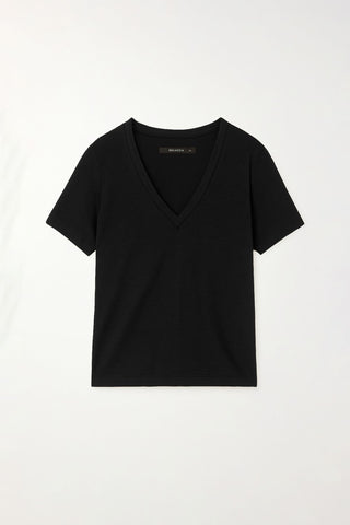 Remera Escote V Básica De Jersey Flamé. Manga Corta De Calce Holgado Recto. Largo Hasta La Cadera, Con Escote V En Delantero Y Terminación De La Misma Tela .