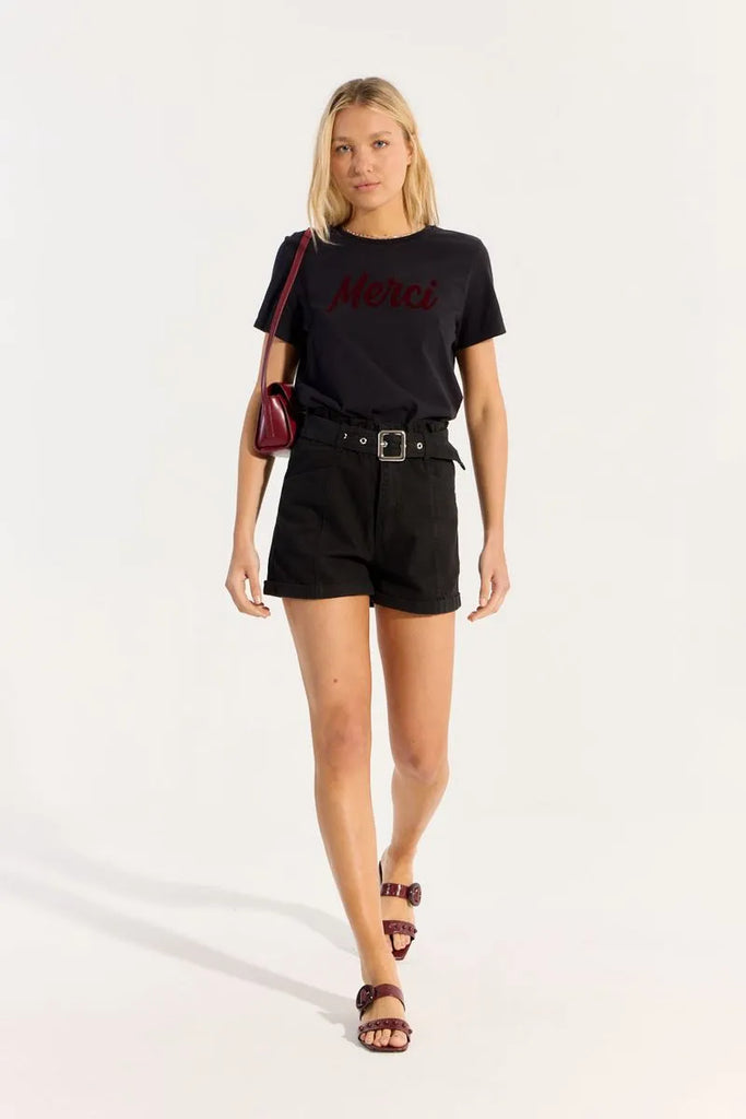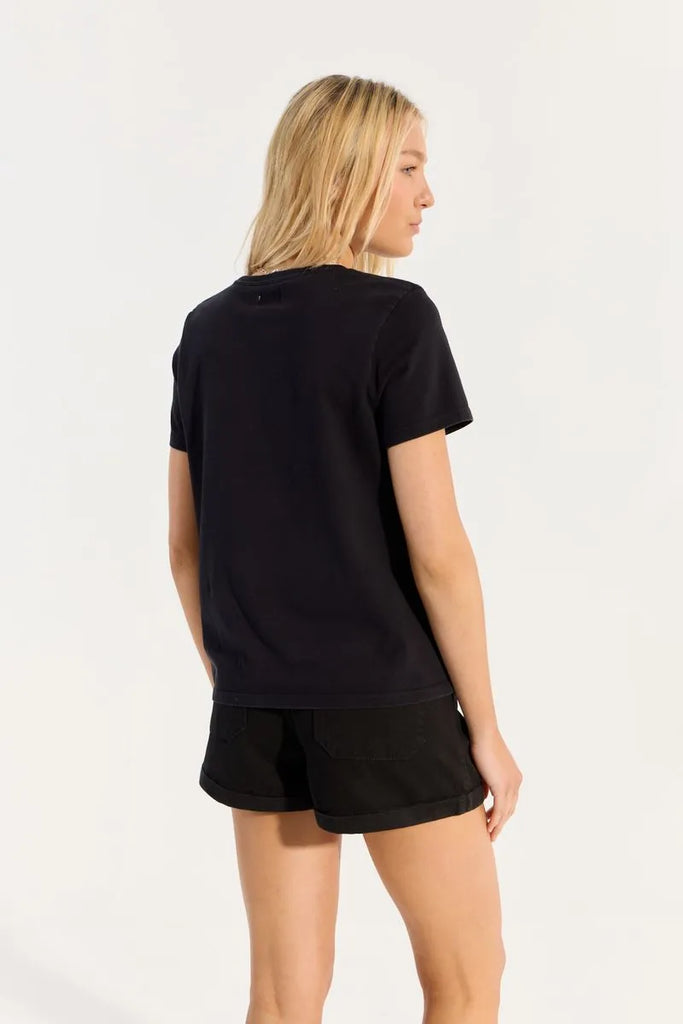 Remera de calce regular con manga corta. Detalle de estasmpa en flock roto en delantero y lavada. Tejido de algodon