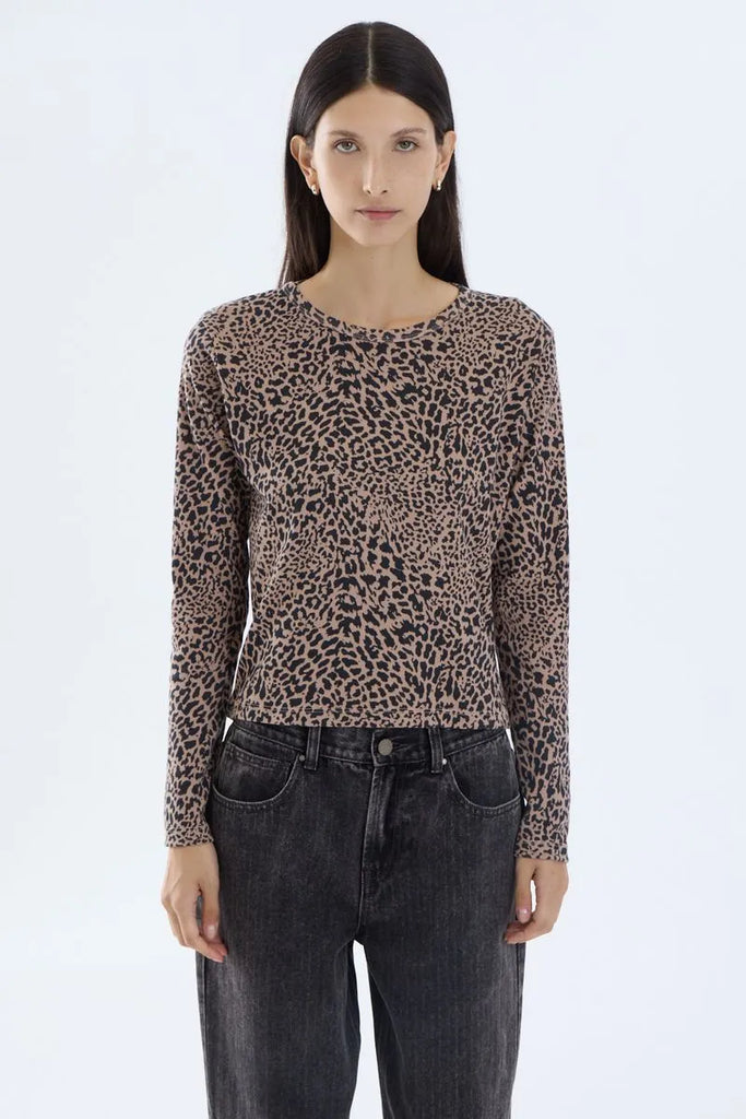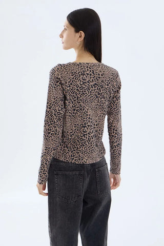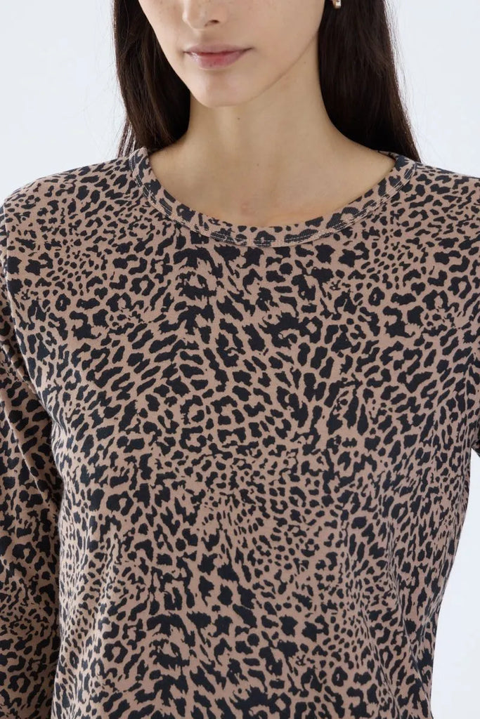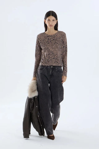 Remera de calce regular y manga larga. Detalle de tejido ribb de algodón estampado.