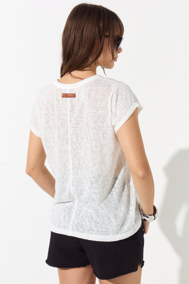 Remera manga corta de mell, su calce es amplio y su escote redondo clásico. En el centro de la espalda lleva una badana de pu con la identificación de marca.