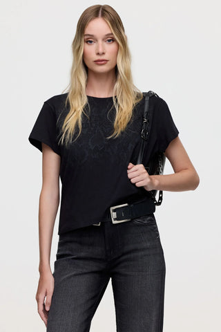 Remera confeccionada en tejido liviano de algodón con estampa exclusiva de la temporada de Invierno 26. El calce es relajado. En el escote trasero lleva un dije con el logo de la marca. Usala para un look Tucci muy audaz.