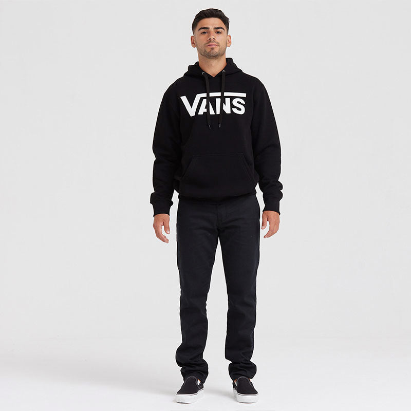 El buzo Vans Classic III PO color negro combina un estilo urbano con detalles clásicos de la marca. Confeccionado con capucha ajustable y bolsillo tipo canguro, presenta una estampa distintiva en el frente, etiqueta de marca y talle, grifa Vans en el lateral y cinta interior personalizada. Su calce cómodo lo convierte en una prenda versátil para el uso diario, ideal para complementar cualquier outfit casual.
