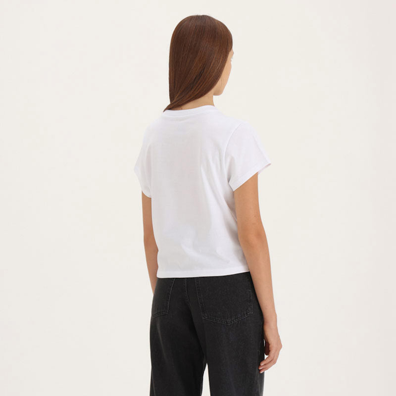 Remera VANS original Starmarked Fitted Baby Tee Blanco, una prenda de calce ajustado con silueta baby tee y largo ligeramente corto, ideal para sumar un look limpio y definido al uso diario. Está confeccionada en algodón 100%, un material suave y cómodo para todos los días. Presenta cuello redondo clásico, mangas cortas y gráfico frontal centrado en el pecho con el logotipo de la estrella de Vans, un detalle distintivo que refuerza su estilo simple y versátil.