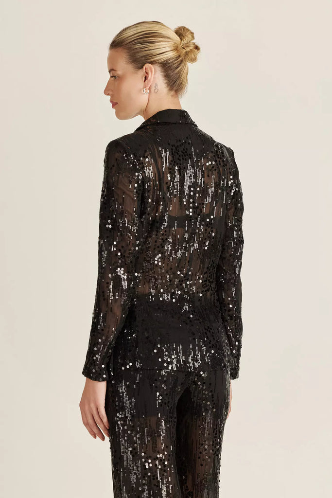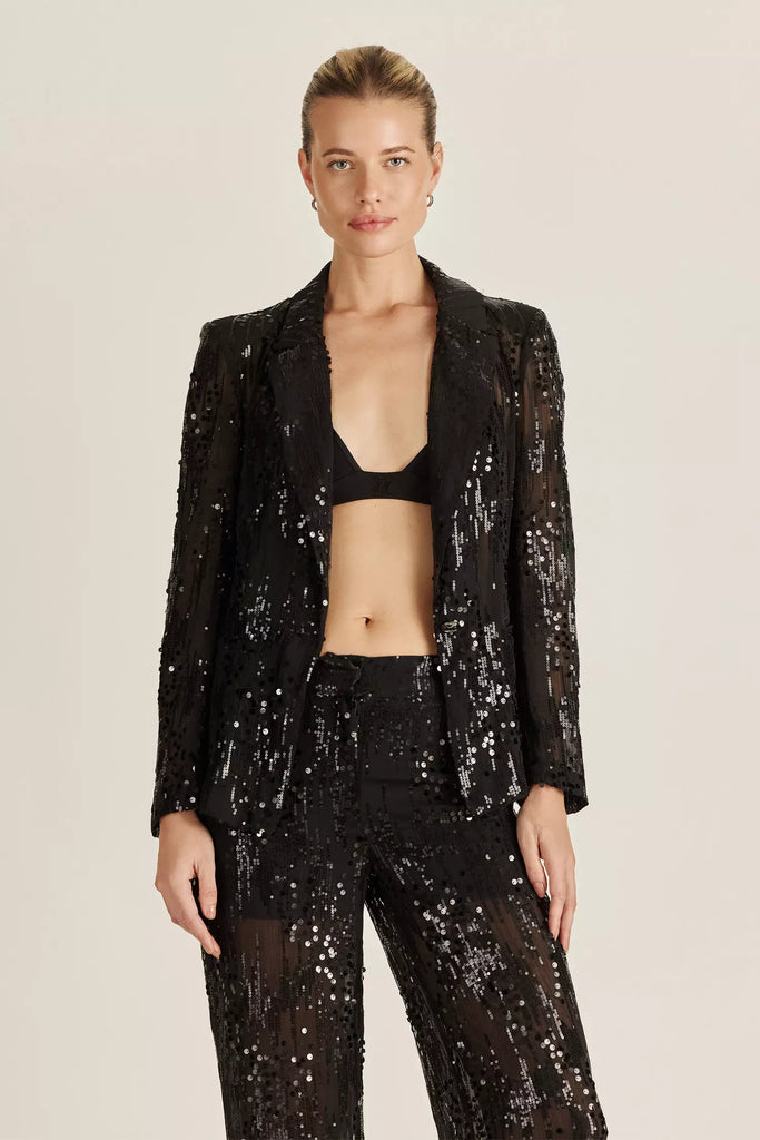 Este saco de gasa bordada con lentejuelas aporta toda la elegancia y sensualidad gracias al brillo y transparencia. Con este saco vas a destacar en cualquier evento.