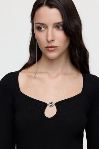 Sweater con silueta adherente, abrigado y elegante. Tiene cuello alto y en las mangas un detalle de botones personalizados Tucci. Un must- have que no pasa de moda y lo podes combinar con todos tus looks.