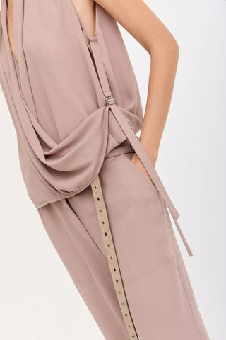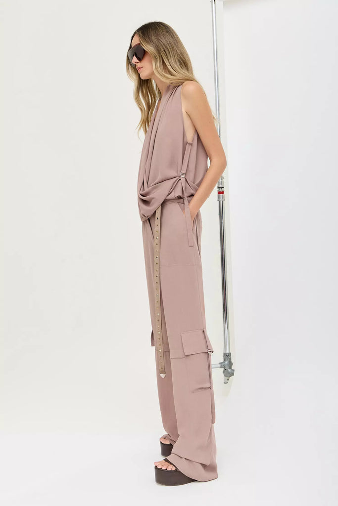Confeccionado con un género liviano y fluido, este top tiene un escote drapeado que genera un look distintivo. Podés regularlo de un lateral para acortarlo a tu gusto. Usalo con el Pantalón Leia para un total look con mucho estilo.